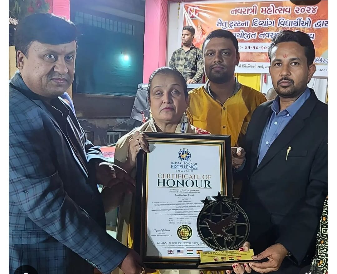 We are delighted to announce that Setu Trust has been awarded a prestigious honor by the Global Book of Excellence, England, for its remarkable contributions to social welfare and its commitment to supporting the differently-abled, including blind children, through their Navratri celebrations. 💫
