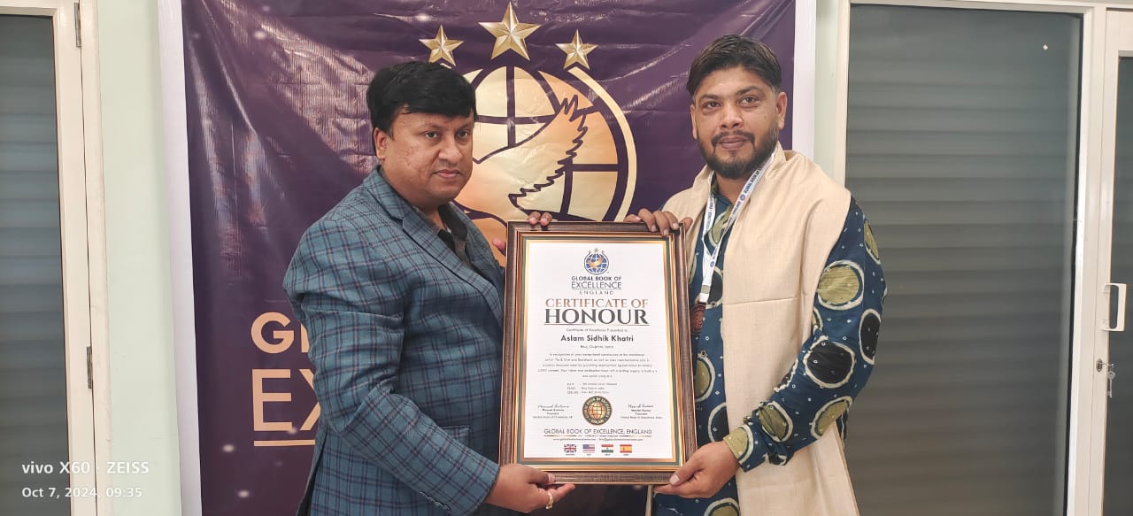 Aslam’s exceptional artistry and dedication to preserving these ancient techniques earned him a well-deserved Certificate and Trophy, presented by Manish Kumar, President, and Nitinbhai Dhotiya, Secretary of the Global Book of Excellence. 🏆🎖️